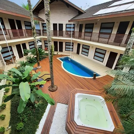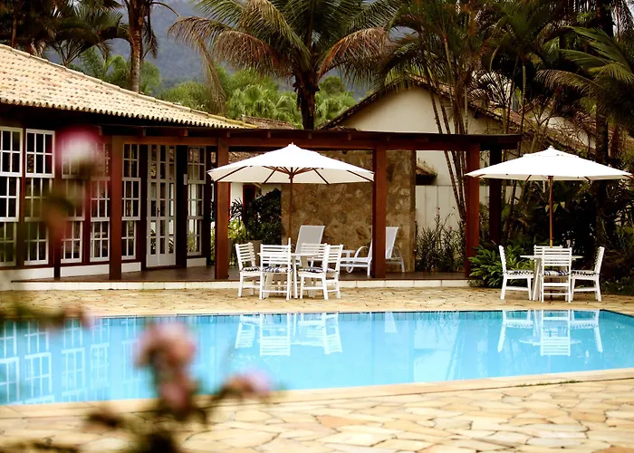 Pousada Apple House Paraty Hotel features rooms with view of the pool. A walk-in shower and a bath are featured in bathrooms.